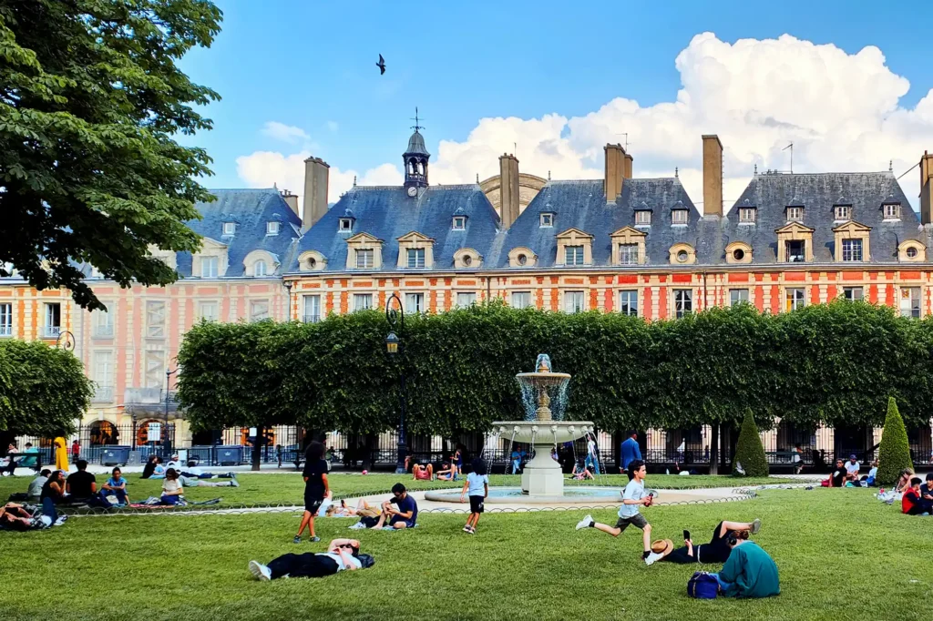 Place des Vosges is een van de oudste en meest elegante pleinen van Parijs en ligt in de wijk Le Marais. Het plein werd aangelegd in het begin van de zeventiende eeuw en staat bekend om de symmetrische gebouwen met rode bakstenen en karakteristieke arcades. In het midden ligt een groene tuin waar je even kunt ontspannen, omringd door rust en historie.