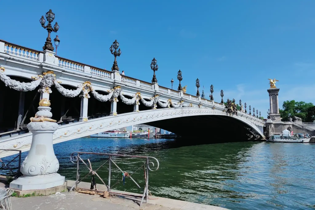 Pont Alexandre III wordt vaak gezien als de mooiste brug van Parijs. De brug is rijk versierd met beelden en gouden details.