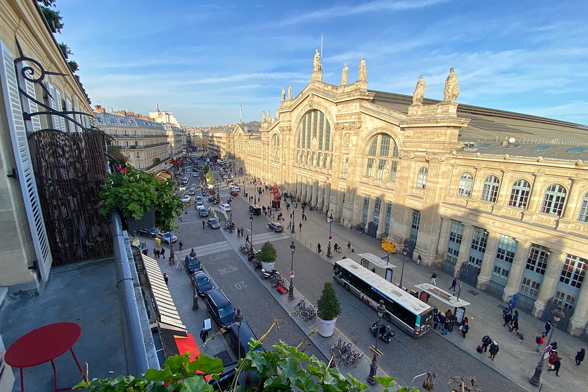 Het 25 Hours Terminus Nord hotel ligt tegenover het Gare du Nord treinstation, in het 10e arrondissement van Parijs. Wie met de trein Parijs binnen rijdt kan dus binnen een paar minuten al zijn of haar koffers uit pakken.