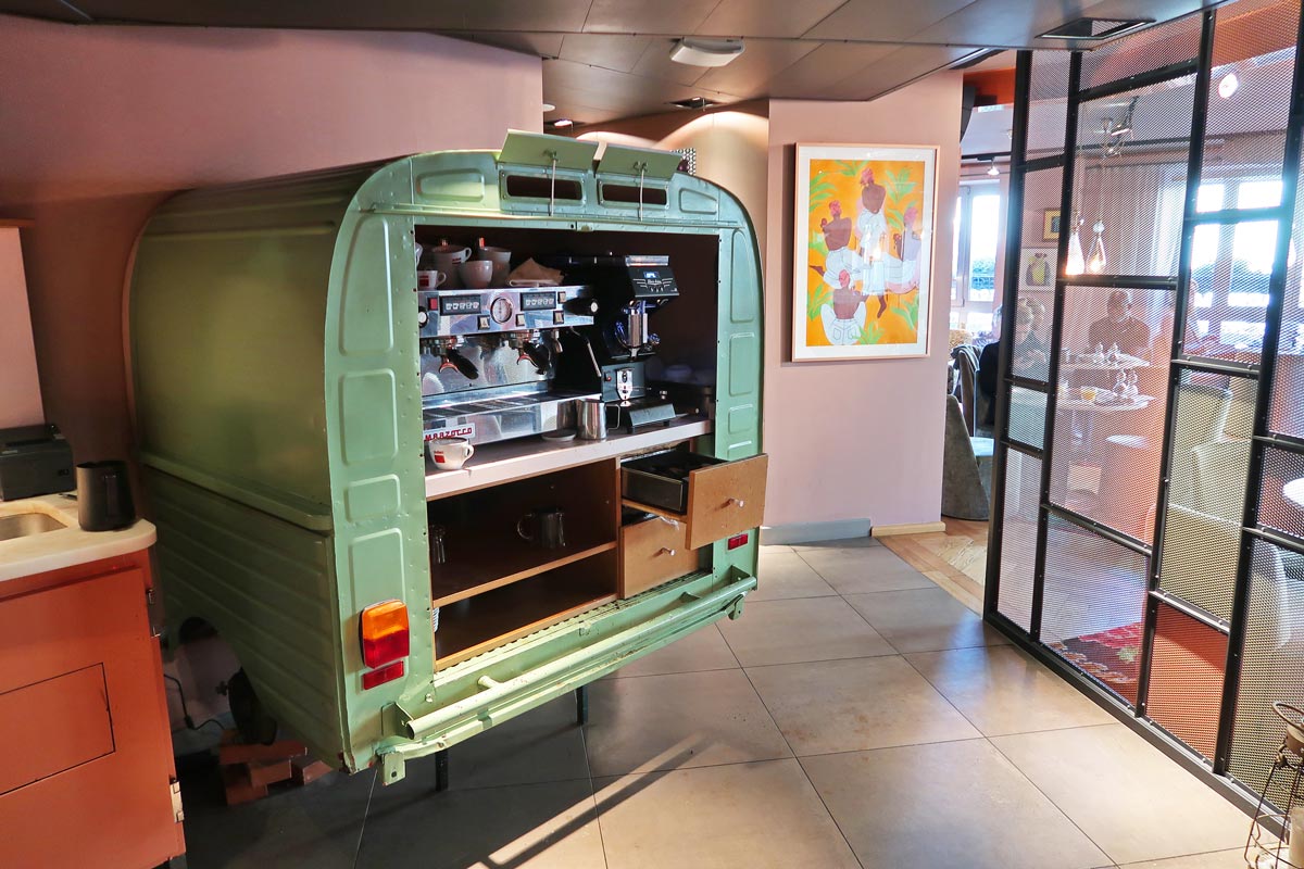 Het hotel is tot in de kleinste details versierd met vrolijke prints, handgemaakte accessoires, grafische patronen en kleurrijke posters. Overal zie je verwijzingen naar Afrikaanse kunst en streetculture, gecombineerd met vintage elementen en moderne styling. Het geheel voelt energiek, warm en huiselijk tegelijk — precies wat je verwacht van een hotel dat midden in een multiculturele wijk staat.