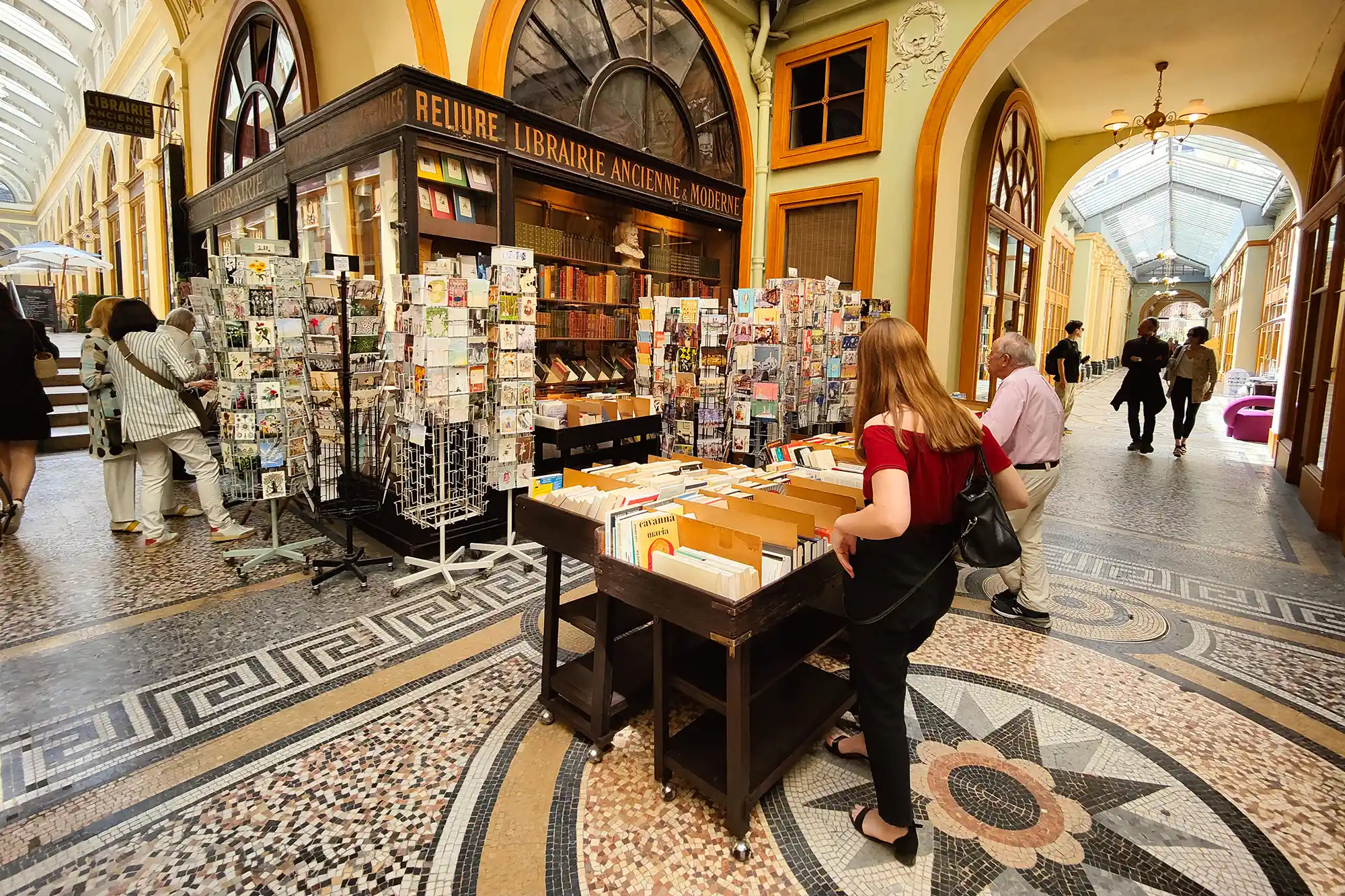 Galeries Vivienne werd geopend in 1823 en is een van de best bewaarde overdekte passages van Parijs. In de negentiende eeuw verschenen er tientallen van dit soort winkelgalerijen in de stad. Ze boden Parijzenaars een beschutte plek om te winkelen en te wandelen, iets wat destijds bijzonder aantrekkelijk was omdat de straten vaak modderig en druk waren.