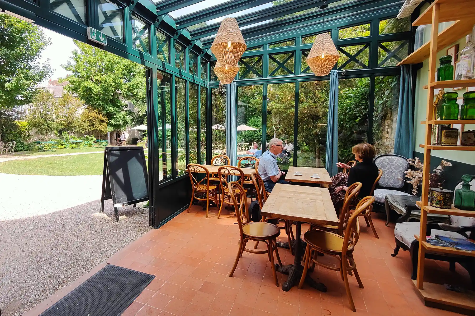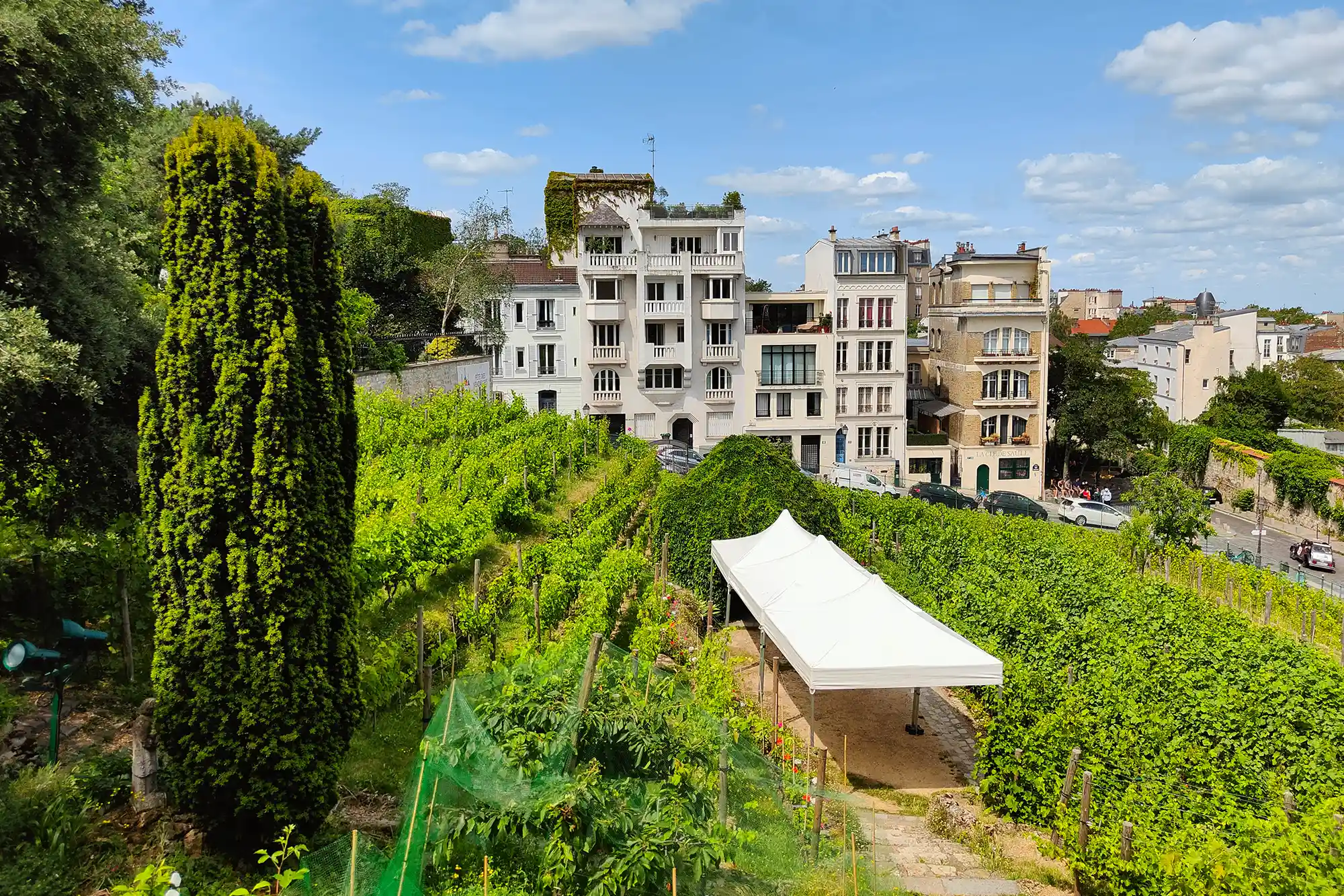 In de tuin ligt ook een klein café waar je iets kunt drinken of lunchen. Vanaf hier heb je uitzicht op de nabijgelegen wijngaard van Montmartre, de Clos Montmartre, wat zorgt voor een bijzonder decor midden in de stad.